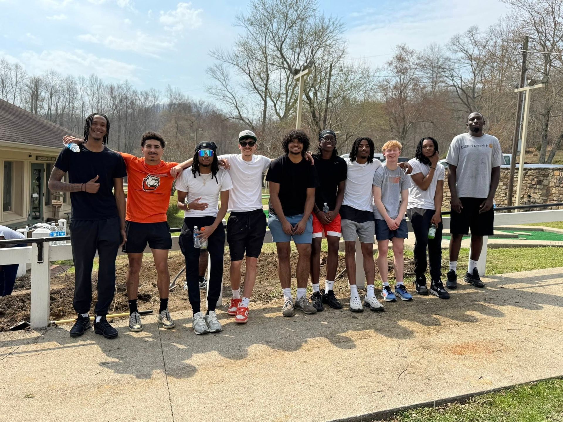 [IMAGE: Union's Men's Basketball team poses for a photo during SERVE Day.]